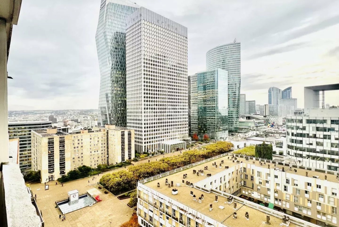 ASM Real Estate offers you a spacious 54 m² 1-bedroom apartment in good condition, located on the 13th floor of a Le Corbusier-style building in the heart of the La Défense district. The apartment offers an incredible view of La Défense, facing south with an unobstructed balcony.